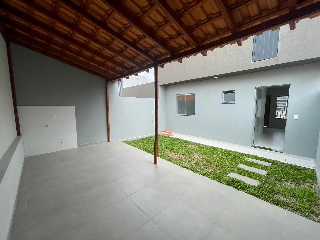 Piso todo em porcelanato inclusive na garagem e na edícula
